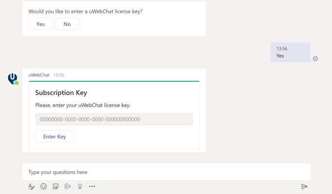 It is not required to activate a paid version of uWebChat during the initial setup. You can start using uWebChat without entering a licence key, this will give you access to the features of the Free edition. You can choose to enter the license key later by using the Upgrade command.