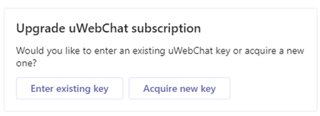 In the image below, an example of a rich card with buttons is shown. This specific card appears when using the Upgrade command in uWebChat. Simply click on a button to continue.