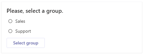 In the image below, an example of a multiple-choice rich card is shown. This specific card appears when using the Edit group command. Select the desired option and click the button to continue.